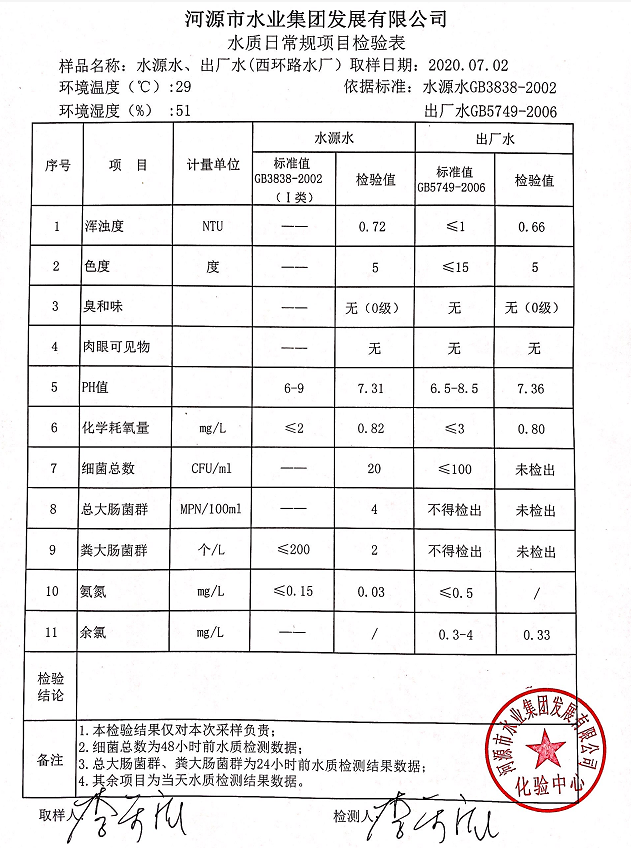 2020年7月2日水質檢驗報告