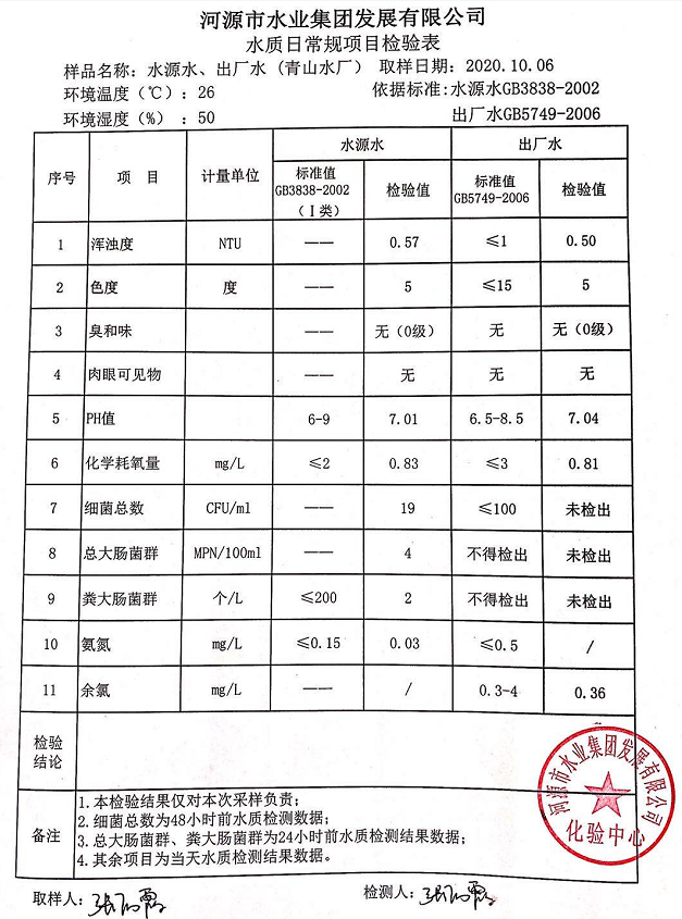 2020年10月6日水質檢驗報告