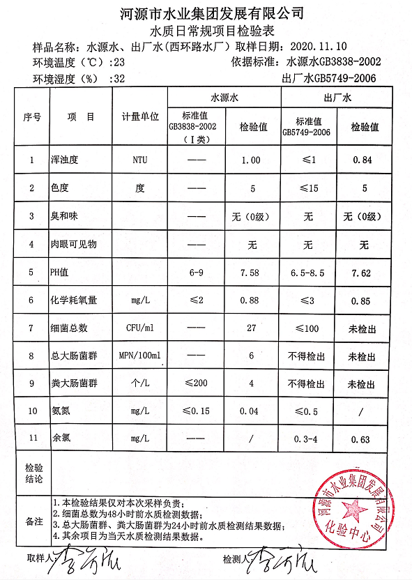 2020年11月10日水質檢驗報告