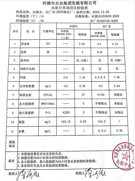 2020年12月8日水質檢驗報告