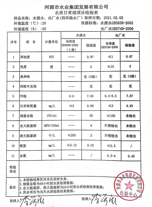 2021年2月2日水質檢驗報告
