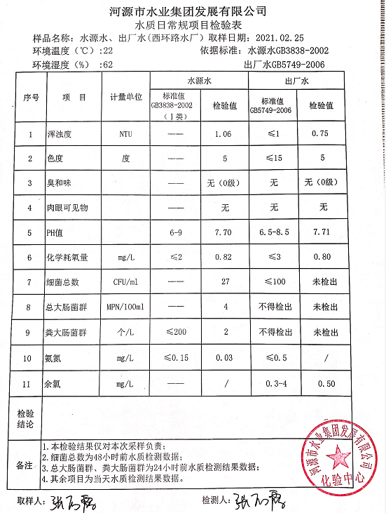 2021年2月25日水質檢驗報告