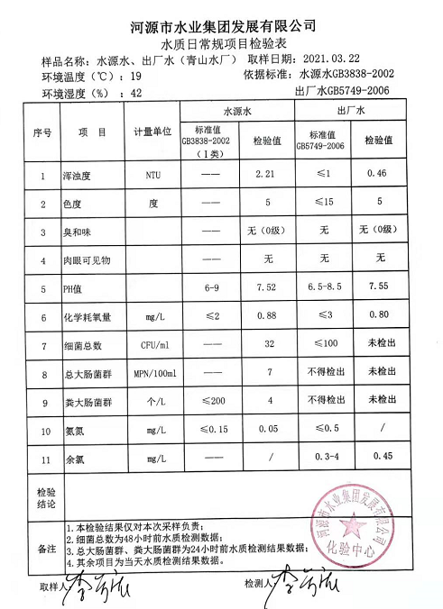 2021年3月22日水質檢驗報告