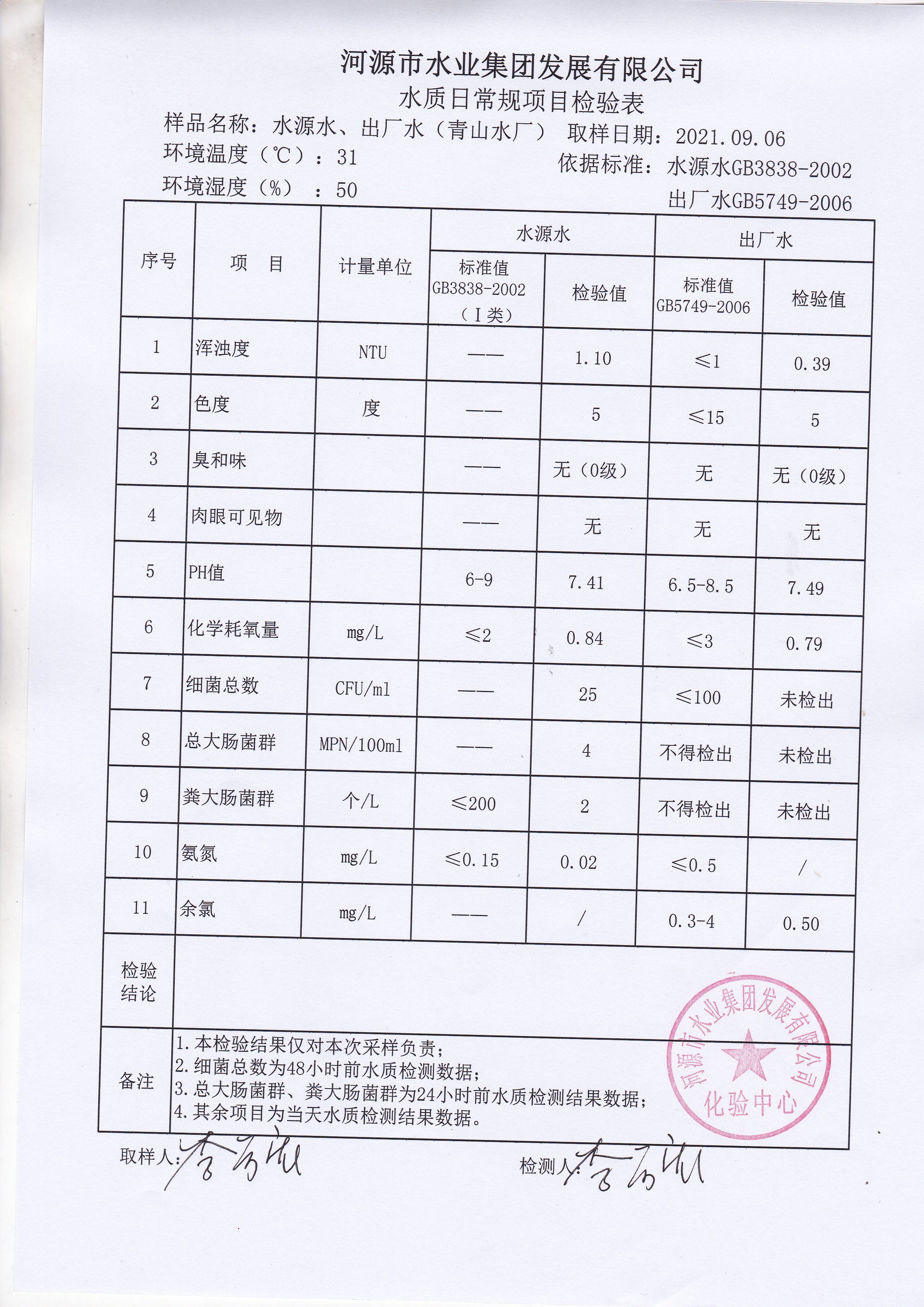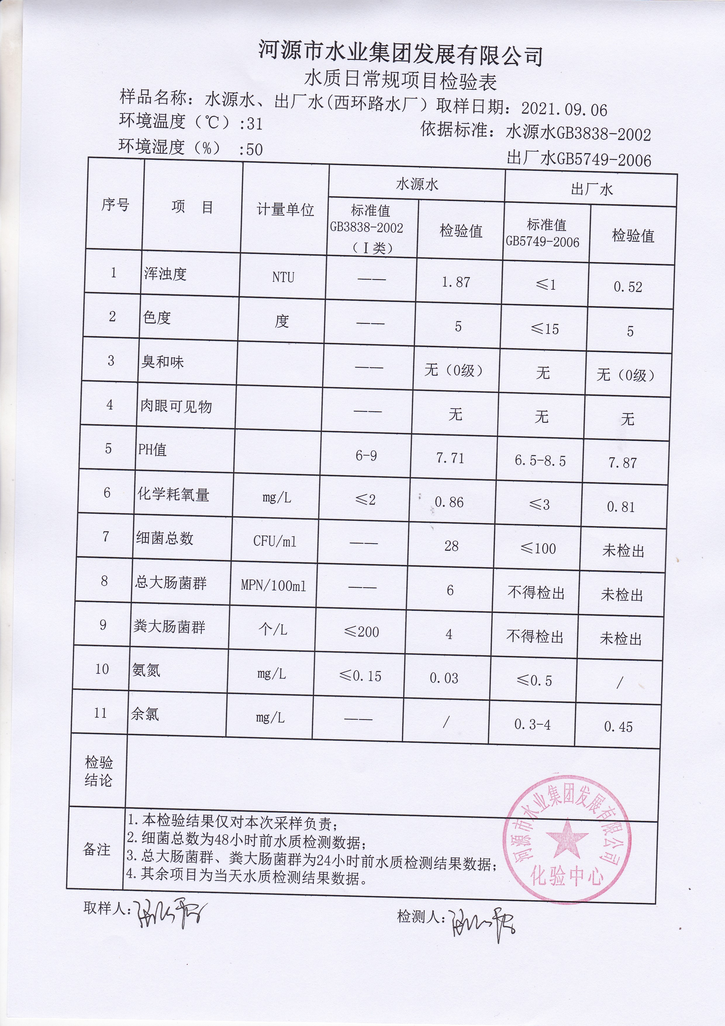 2021年9月6日水質檢驗報告 ????