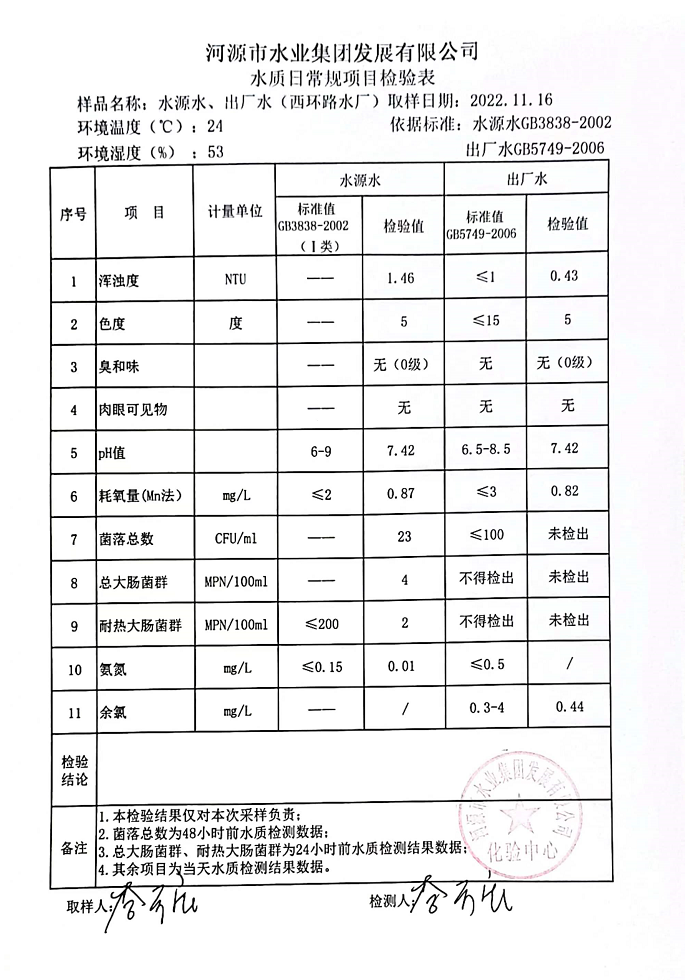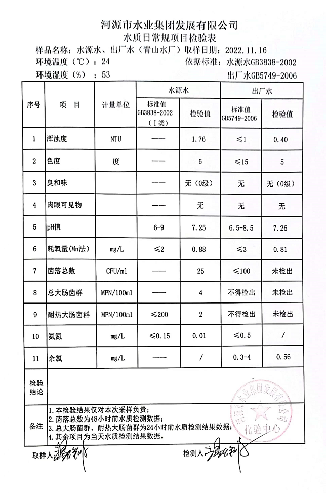 2022年11月16日水質檢驗報告