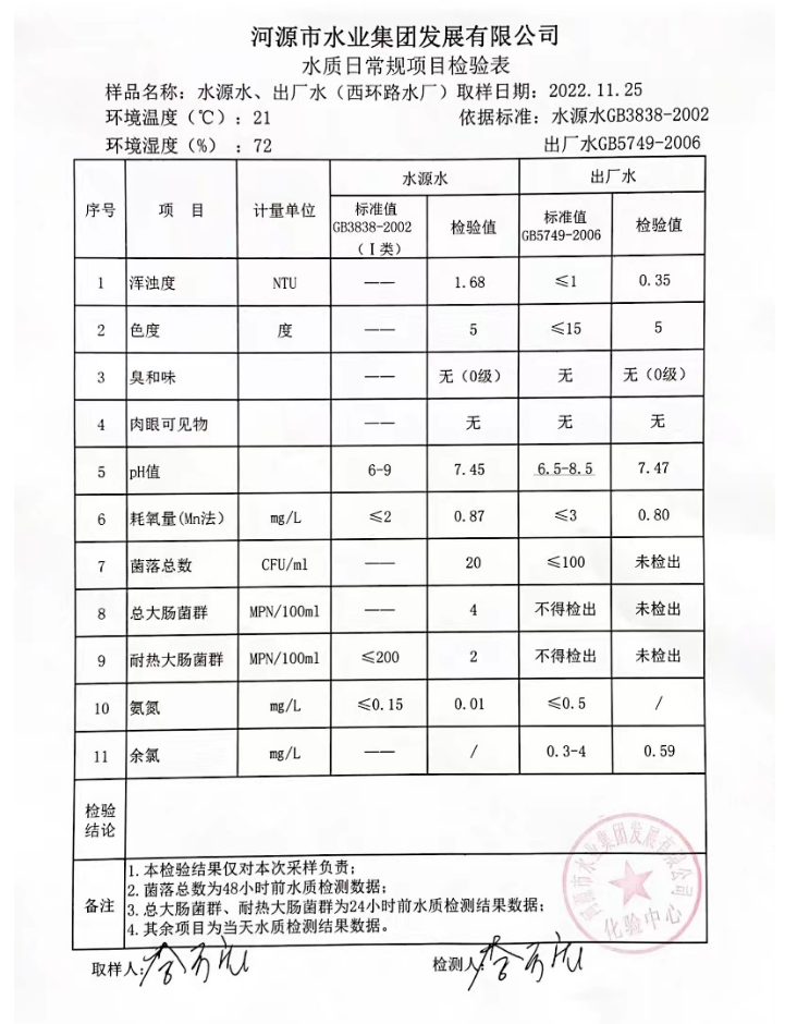 2022年11月25日水質檢驗報告