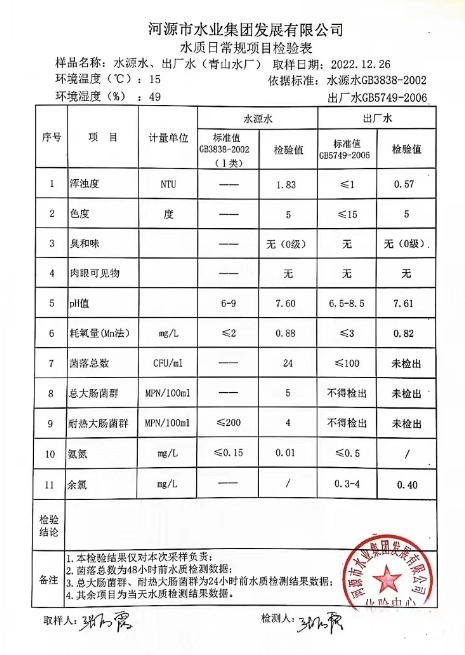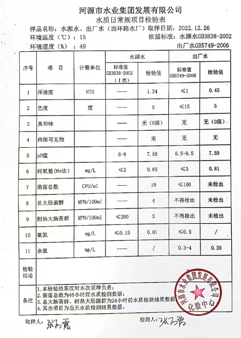 2022年12月26日水質檢驗報告
