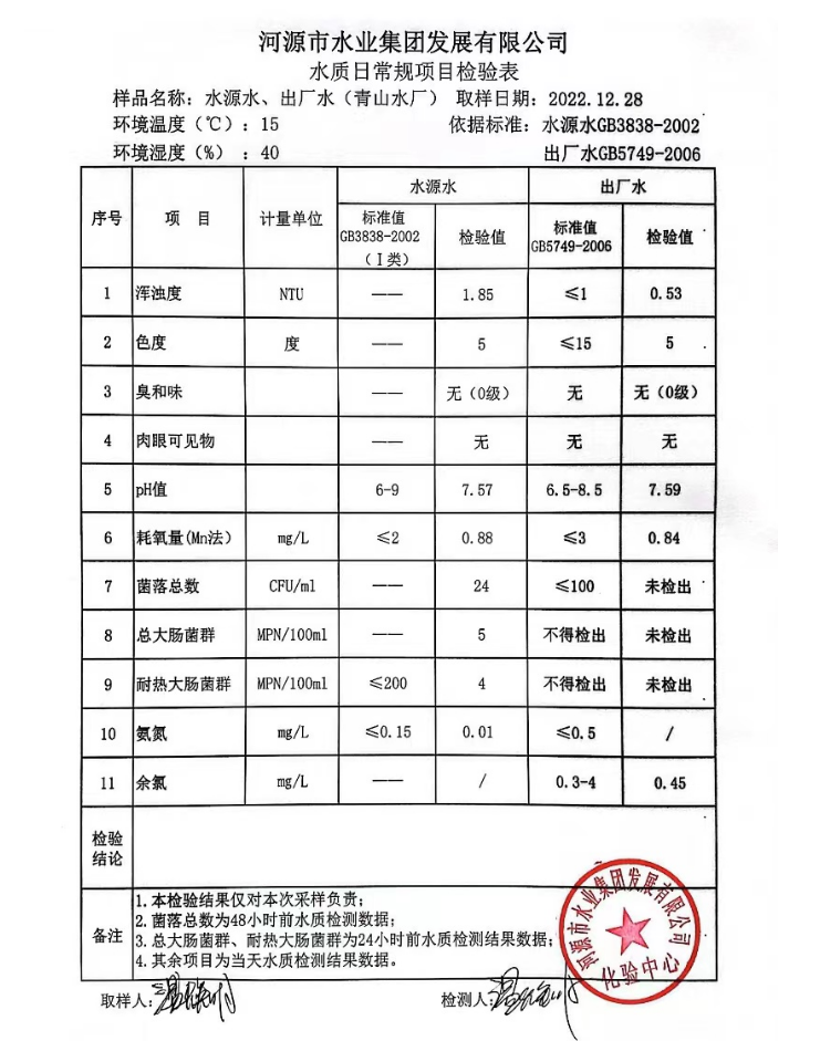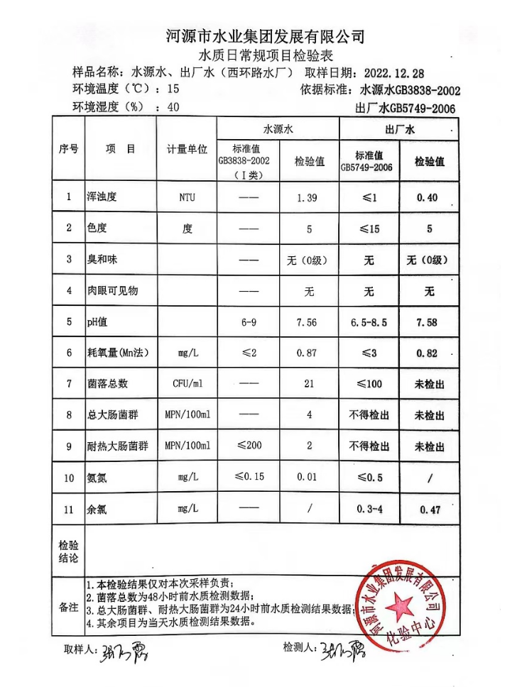 2022年12月28日水質檢驗報告