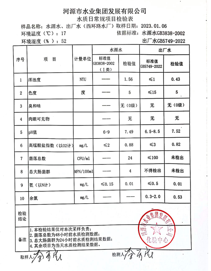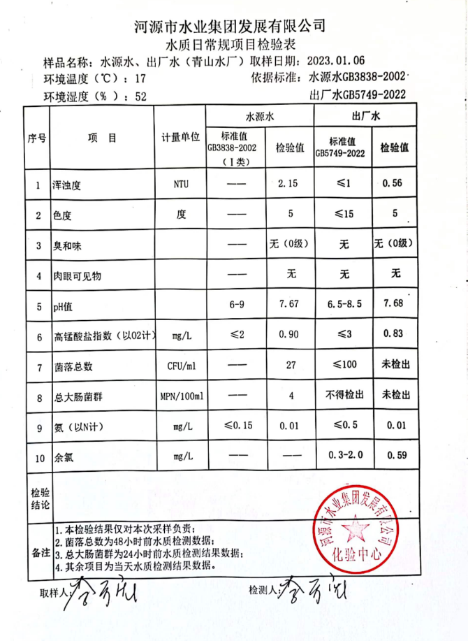 2023年1月6日水質檢驗報告
