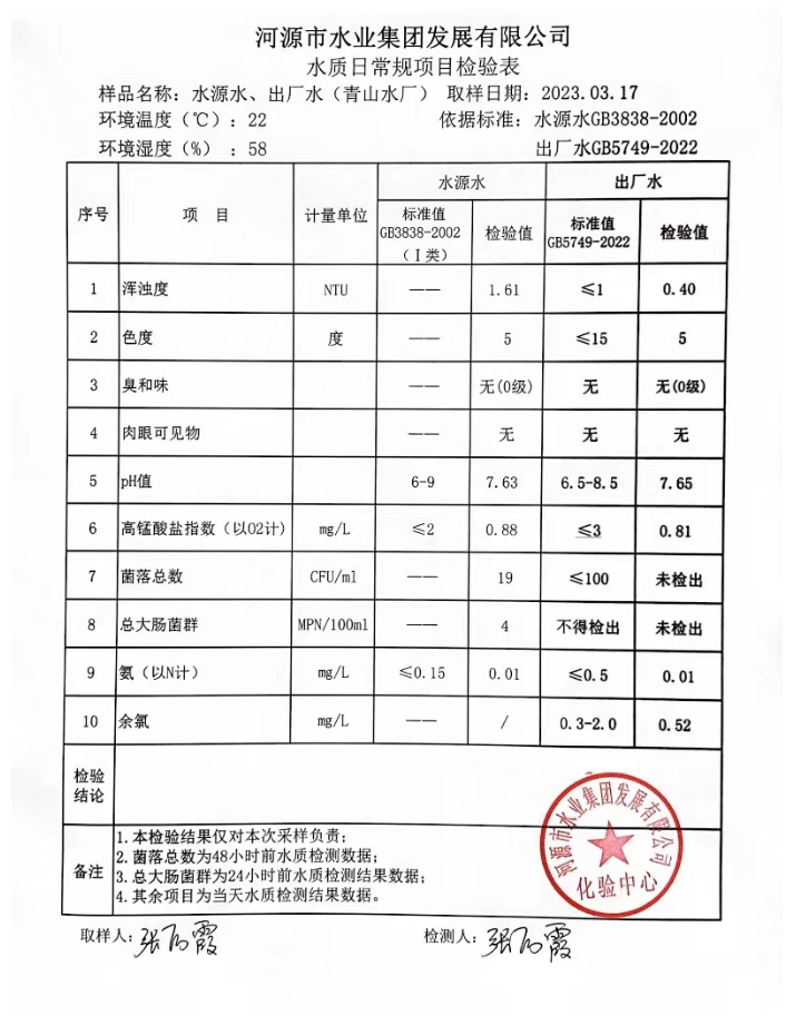 2023年3月17日水質檢驗報告