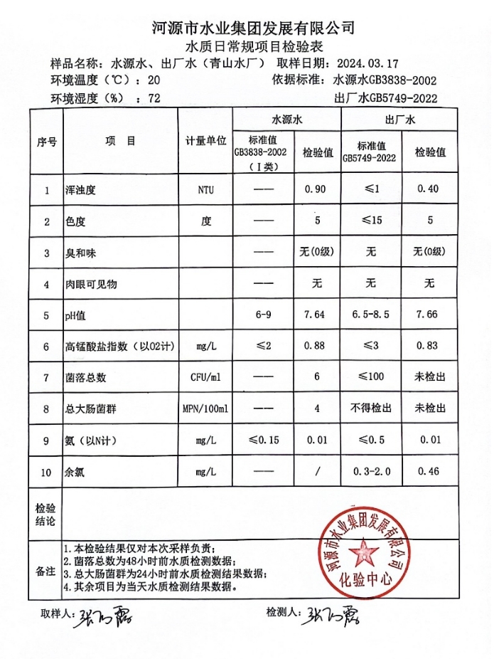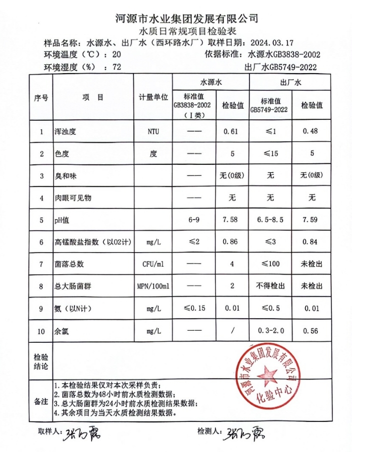 2024年3月17日水質檢驗報告