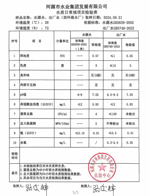 2024年9月21日水質檢驗報告